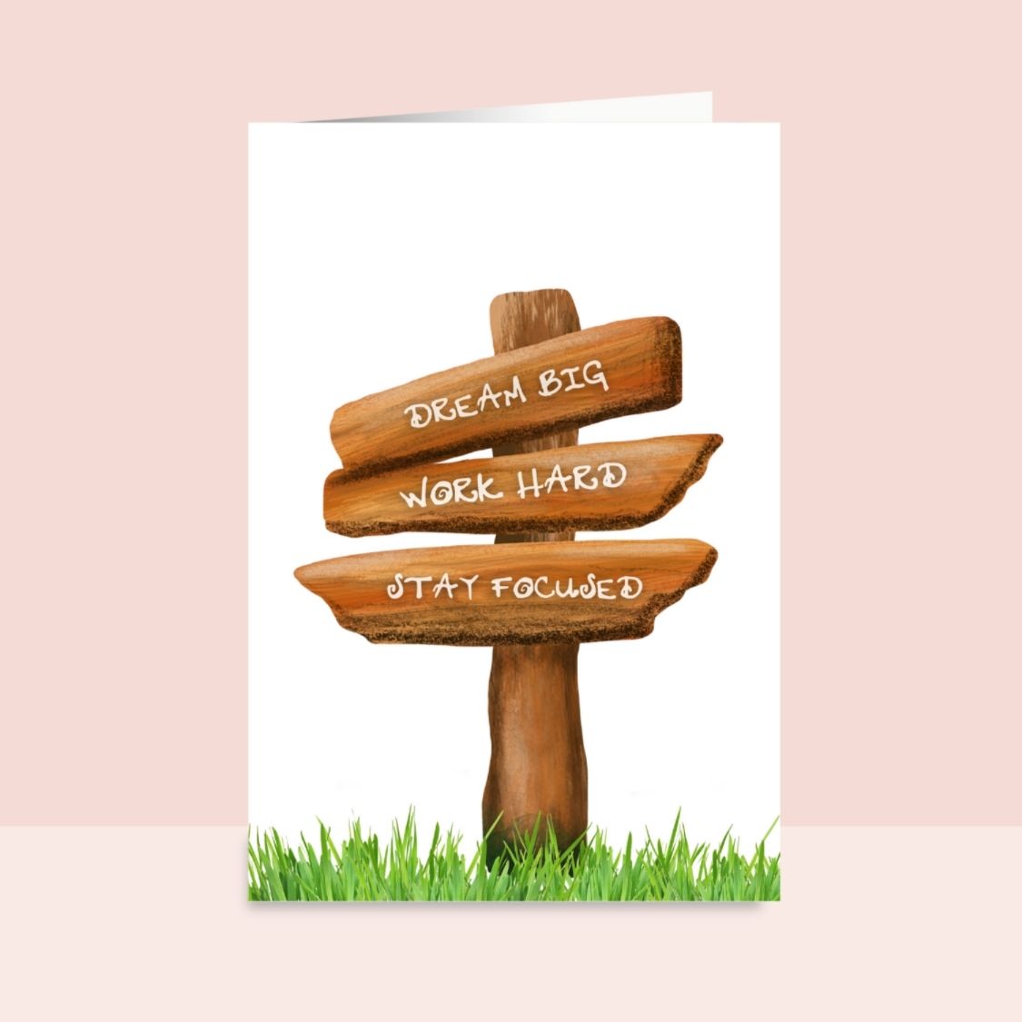 Dream Big, Work Hard, Stay Focused Motivational Handmade Greeting Card